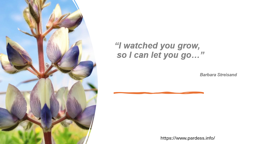 ובמילים אחרות – "הסיבה שצפיתי בך גדלה לא על מנת להחזיק אותך לצידי או איתי אלא כדי ללמוד איך לשחרר אותך".