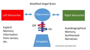 בטיפול ביקשתי ממנו לכתוב יומן, מכיוון שכתיבה שיש בה שיקוף עצמי דורשת מעצם מהותה שיתוף פעולה בין הצד השמאלי והצד הימני במוח. בפגישותינו השבועיות התמקדנו בתחושותיו הגופניות ובדימויים הוויזואליים שלו, וכן בבדיקת משמעותן האפשרית של חוויות לא-מילוליות אלה; כל זאת במטרה להעמיק את הניסיון ליצור קשר בין צד ימין לצד שמאל של מוחו.